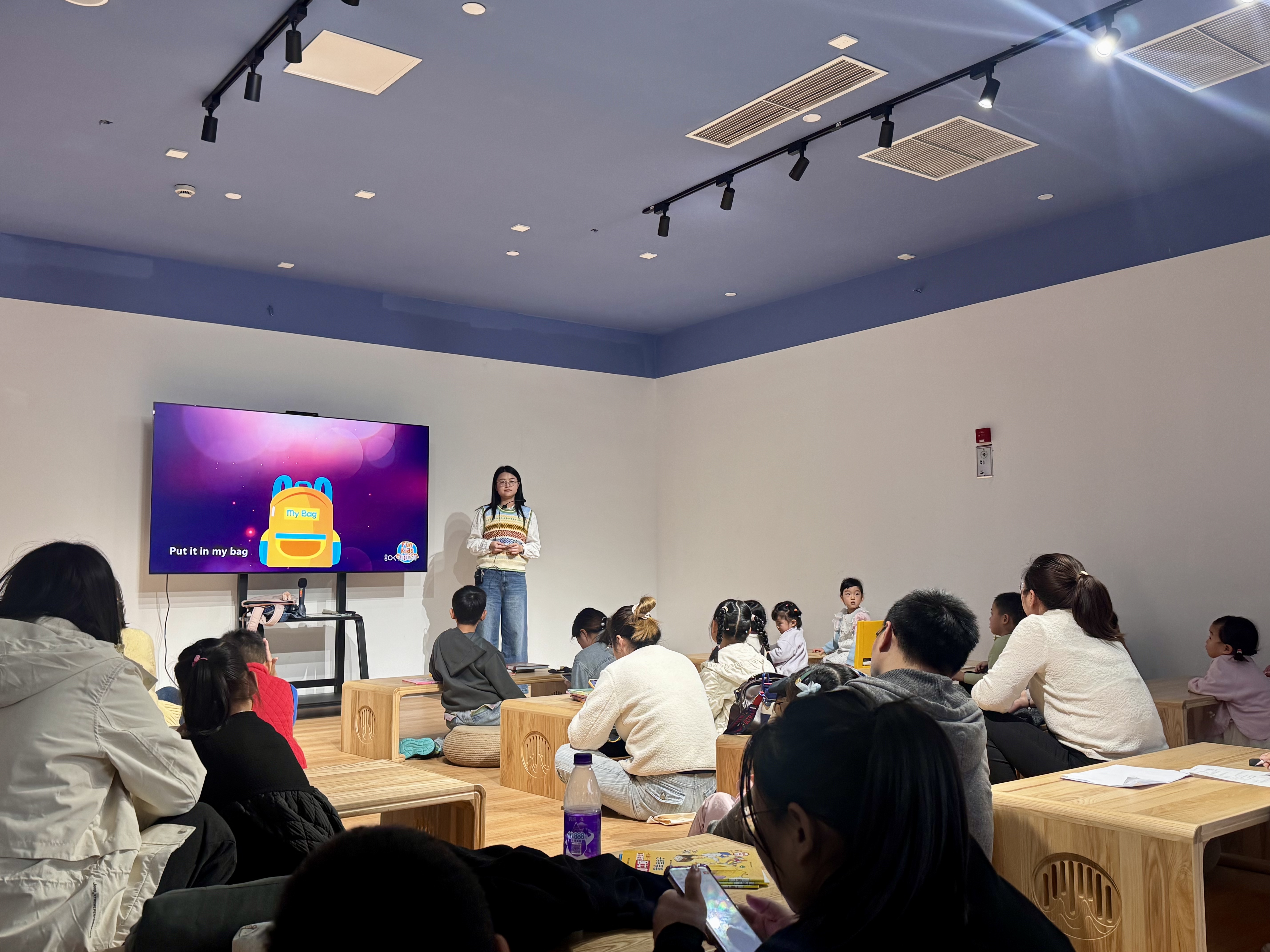 11 月 8 日下午,南通市少年儿童图书馆内书声琅琅, “小布克 ABC 英文阅读 ——My noisy schoolbag” 正在多功能阅览室温馨展开,小读者与家长们齐聚一堂,在生活化的阅读互动中感受英语魅力,沉浸式激发英语阅读兴趣。
