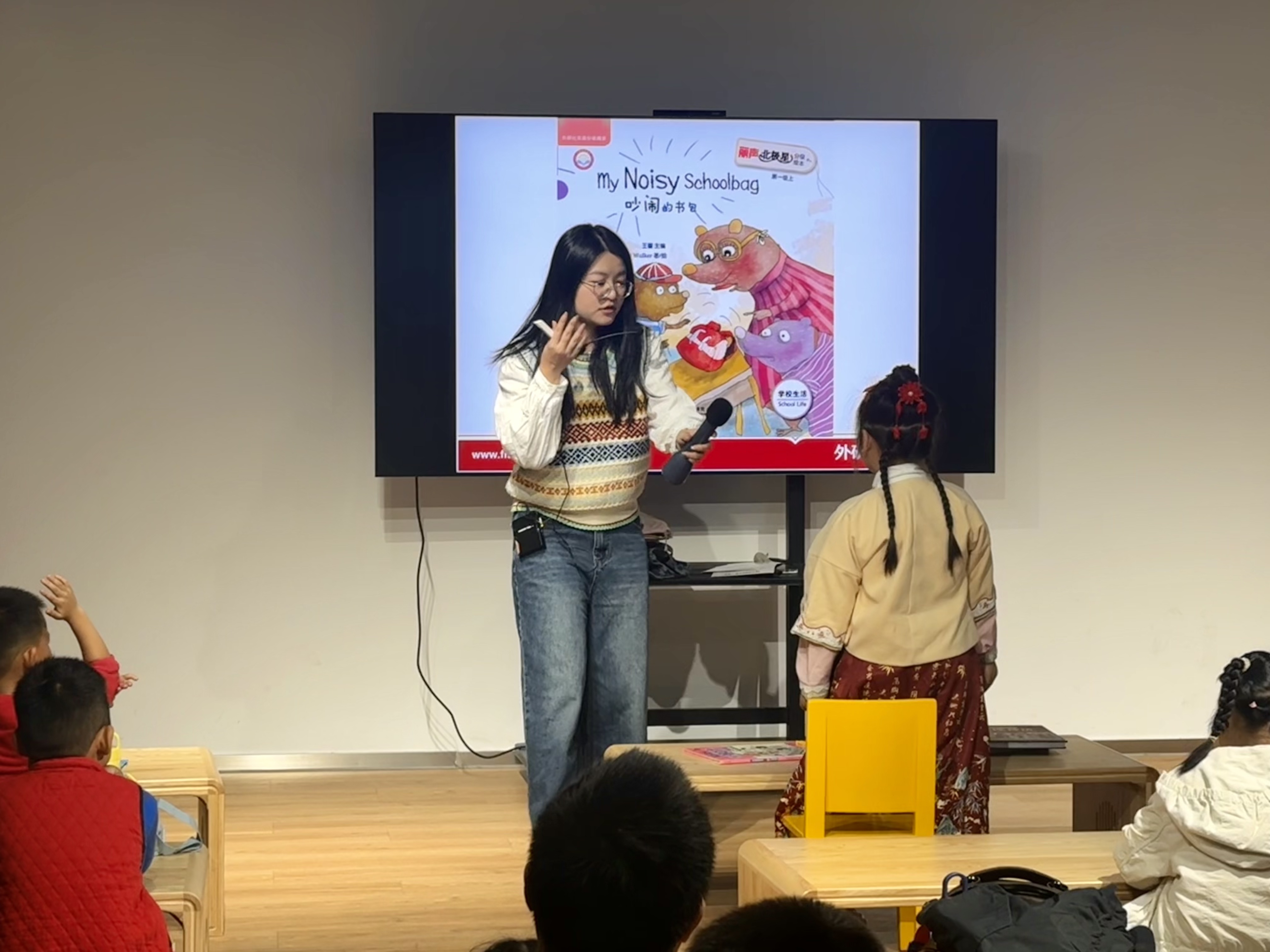 这种“生活体验 + 英文学习”的方式,让孩子不再被动听读,而是在熟悉的场景中自然掌握文具类英文表达,同时理解 “物品功能与声音关联”的生活常识,借助自身生活经验有效降低英语学习难度,实现知识的高效吸收与灵活运用。本期活动通过贴近少儿生活的英文绘本,让孩子们在熟悉的场景中轻松学英语,从生活中学英语、用英语说生活,同时,让孩子在进一步在阅读中感受快乐,激发孩子对日常事物的探索欲,增强其对学习的热爱与自信心,助力英语专业素养稳步提升。