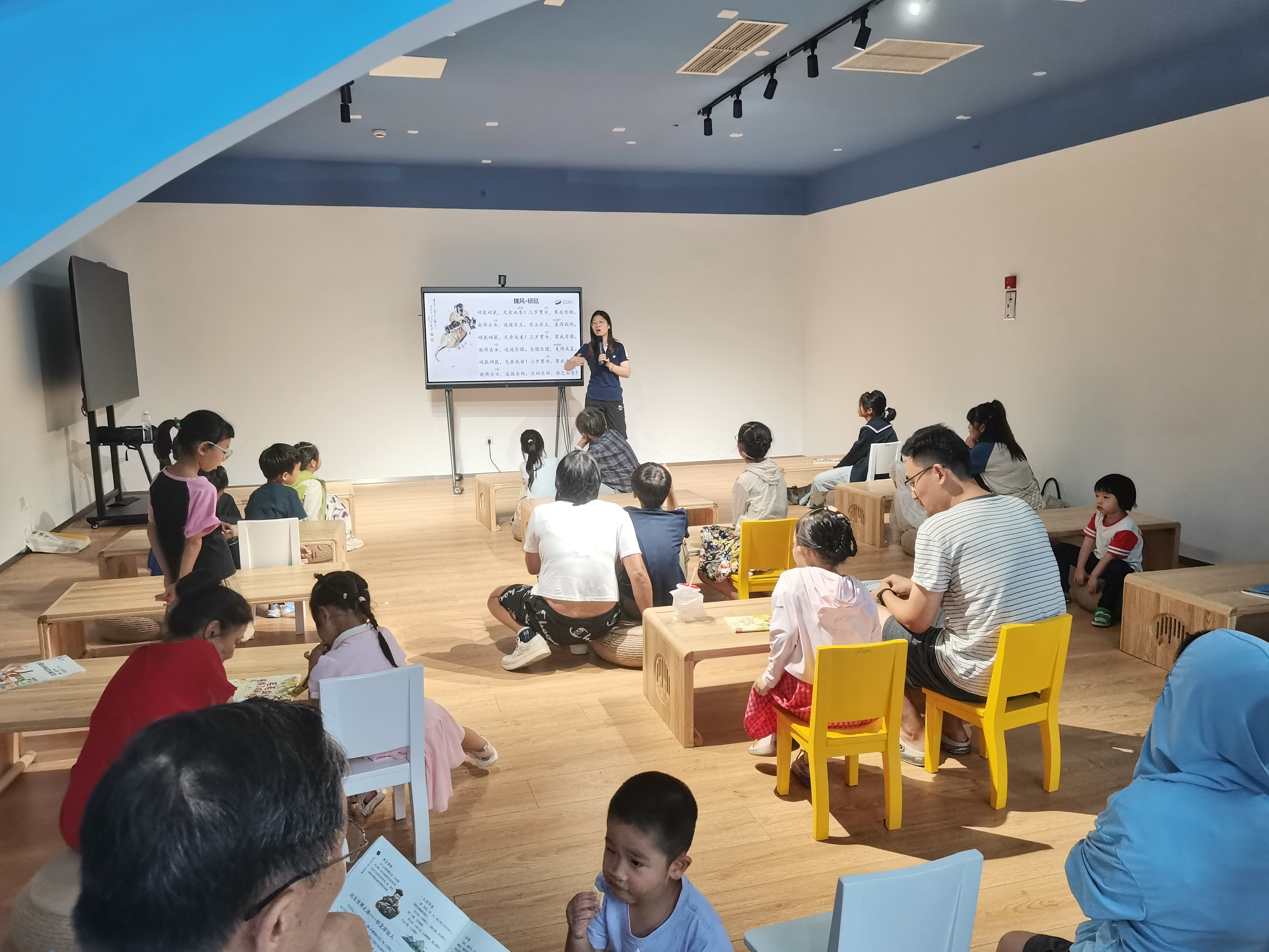 为打破这一认知隔阂,本次活动以《硕鼠》为核心,创新设计内容形式:不仅准备了《硕鼠》与古代社会生活的关联图文,用生动插画还原 “农夫劳作”“硕鼠掠夺” 的场景,帮助孩子理解诗句创作背景;还融入 “古今对比” 环节,通过讲述现代社会中 “公正廉洁” 的小故事,让孩子明白 “反对贪婪、追求公平” 的理念古今相通;同时设置 “《硕鼠》意象小课堂”,解析 “硕鼠” 的比喻手法,教孩子用类似方式表达对生活现象的看法。通过这些设计,既能让孩子在轻松氛围中理解经典,提升文学鉴赏能力,又能引导他们树立正确的价值观,学会关注生活、明辨是非,为小读者播下正义与担当的种子。