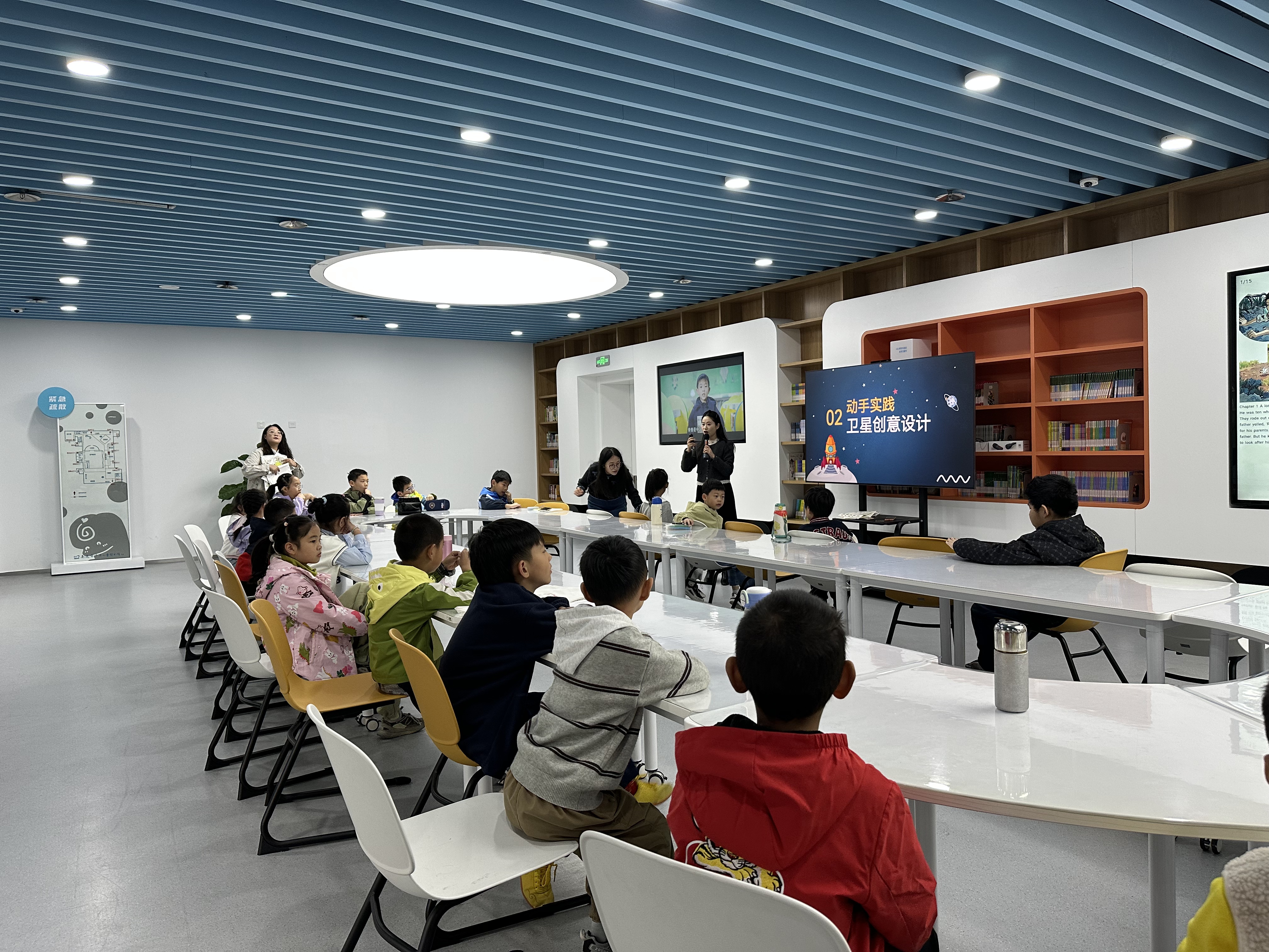 2025 年 11 月 15 日上午,市少年儿童图书馆第 196 期少图趣味课堂热闹开课。本期以“卫星创意设计”为主题,25 名 7-12 岁青少年读者参与,在欢乐中探索航天奥秘,变身“小小航天设计师”。当天 9:45 起,孩子们陆续签到并领取 “航天小礼包”。10 点课堂开始,主讲教师用“航天知识蹲”游戏开场,孩子们手持卫星卡片互动,快速熟悉卫星分类,氛围瞬间活跃。兴趣引入环节,教师展示卫星图片与模型,邀请孩子观察“卫星的相同与不同”。孩子们踊跃分享发现,教师顺势总结卫星结构,并结合东方红一号的故事,让大家了解我国卫星发展历史,不少孩子发出赞叹。 知识讲解时,教师用 3D 打印卫星模型,直观讲解太阳能板、天线等结构的作用,还通过“卫星结构连连看”游戏帮孩子巩固知识。播放未来卫星视频后,孩子们纷纷畅想创意,比如设计“送物资卫星”“监测污染卫星”。创意设计环节是重头戏,孩子们先分组讨论思路,再独立画卫星设计图。有人以自己名字命名“乐乐号”,设计森林监测功能;有人参考神话做“哪吒号”,配“风火轮推进器”;还有人设计“清道夫号”清理太空垃圾,助教全程帮忙,确保每个孩子都完成作品。活动尾声,4 名孩子带着自己的设计图上台分享,其中“绿盾号”卫星的森林保护功能,因贴合环保主题、实用性强,得到教师重点表扬。现场为 8 份优秀作品颁发“小小航天设计师”证书,拿到证书的孩子举着设计图与教师合影,笑容格外灿烂。知识回顾环节,面对“卫星靠什么获取能量”“我国第一颗卫星叫什么”等问题,孩子们几乎全员答对,收获满满。