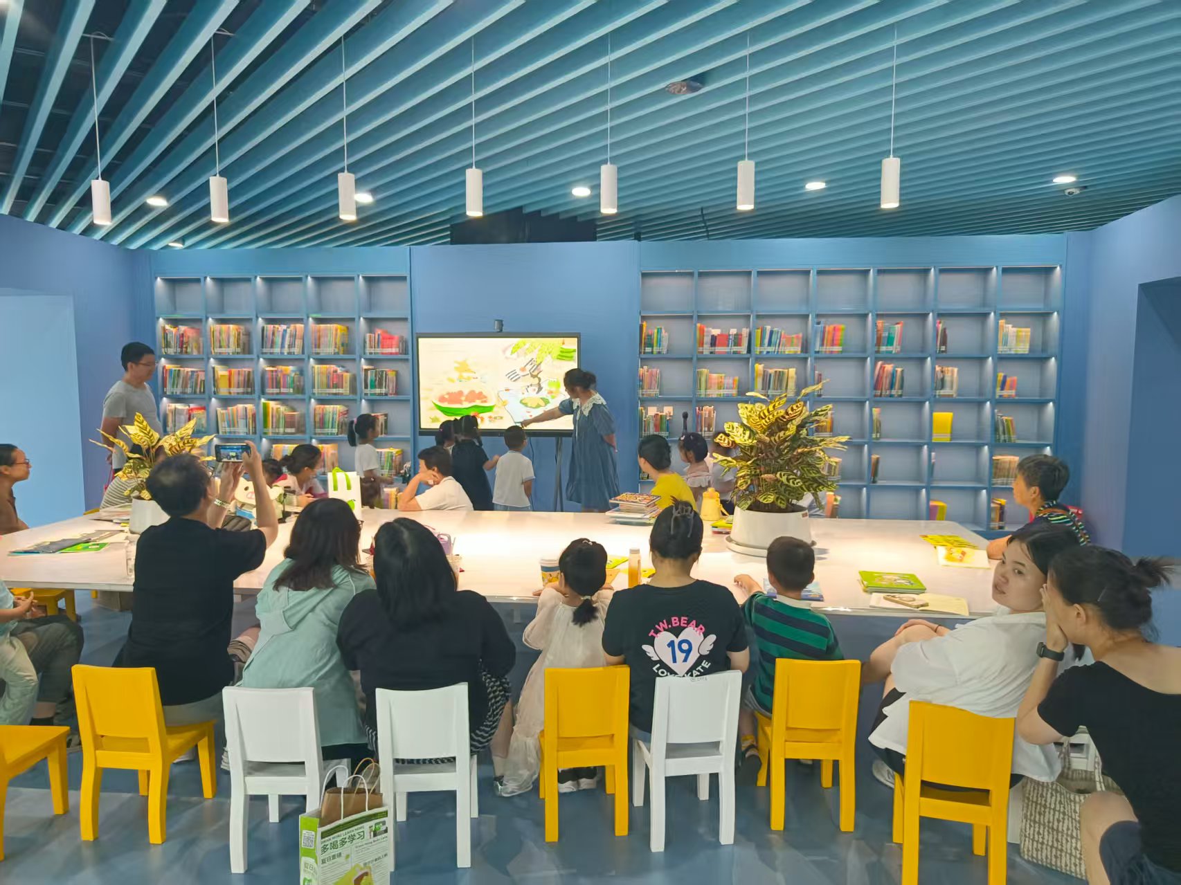月19日下午15时,南通市少年儿童图书馆"蓝鲨滩"阅读区成功举办了第76期"星星姐姐讲故事"活动。本期以《好吃的西瓜车》为主题,吸引了50余名少儿读者与家长参与。