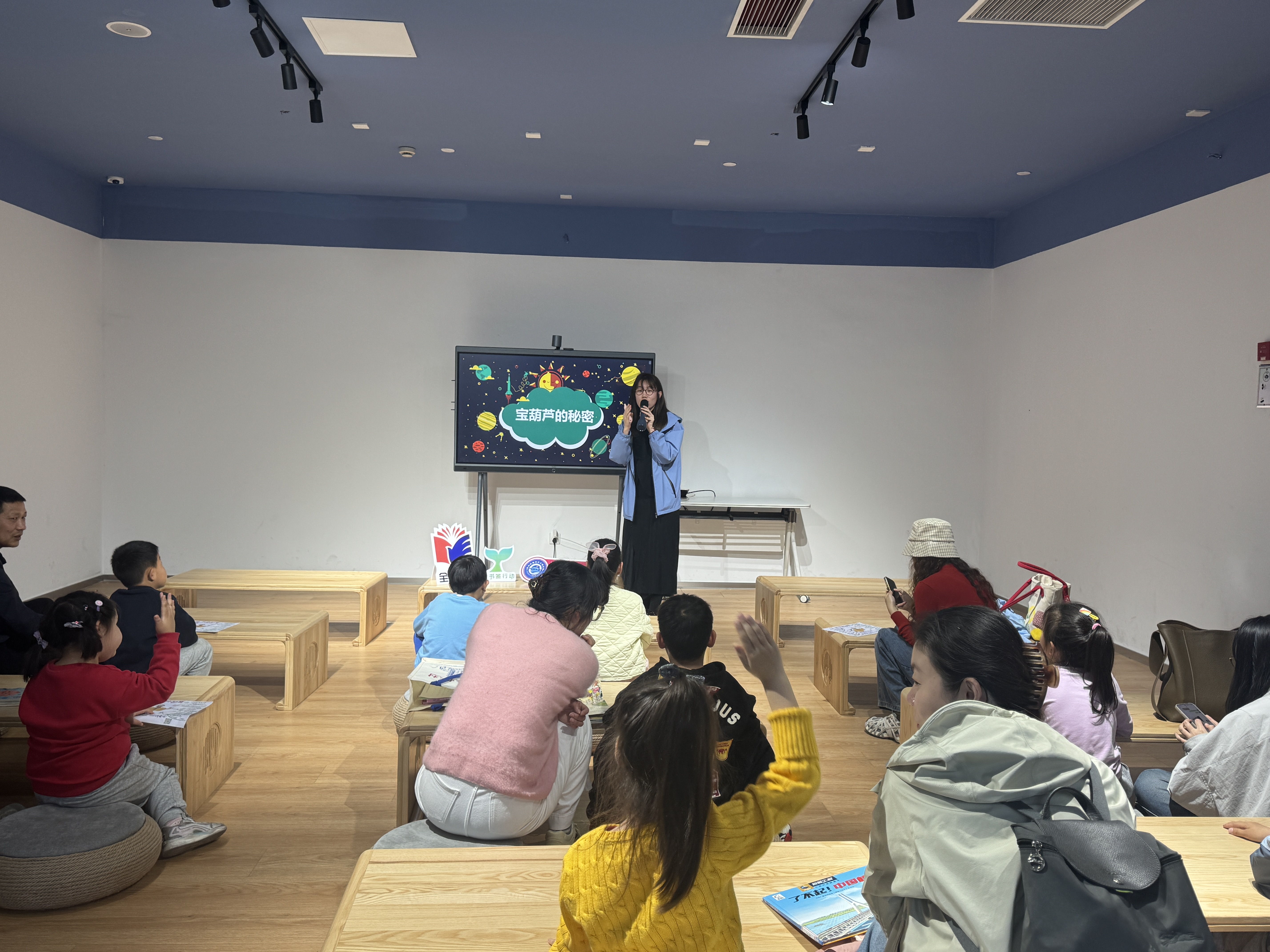 互动环节中,孩子们积极参与讨论,主动分享自己心中的“宝葫芦”,大胆表达对故事的理解与感悟。家长们也全程陪伴,和孩子一起倾听故事、参与互动,在亲子共读的温馨氛围中,共同感受经典童话的魅力,增进亲子感情。