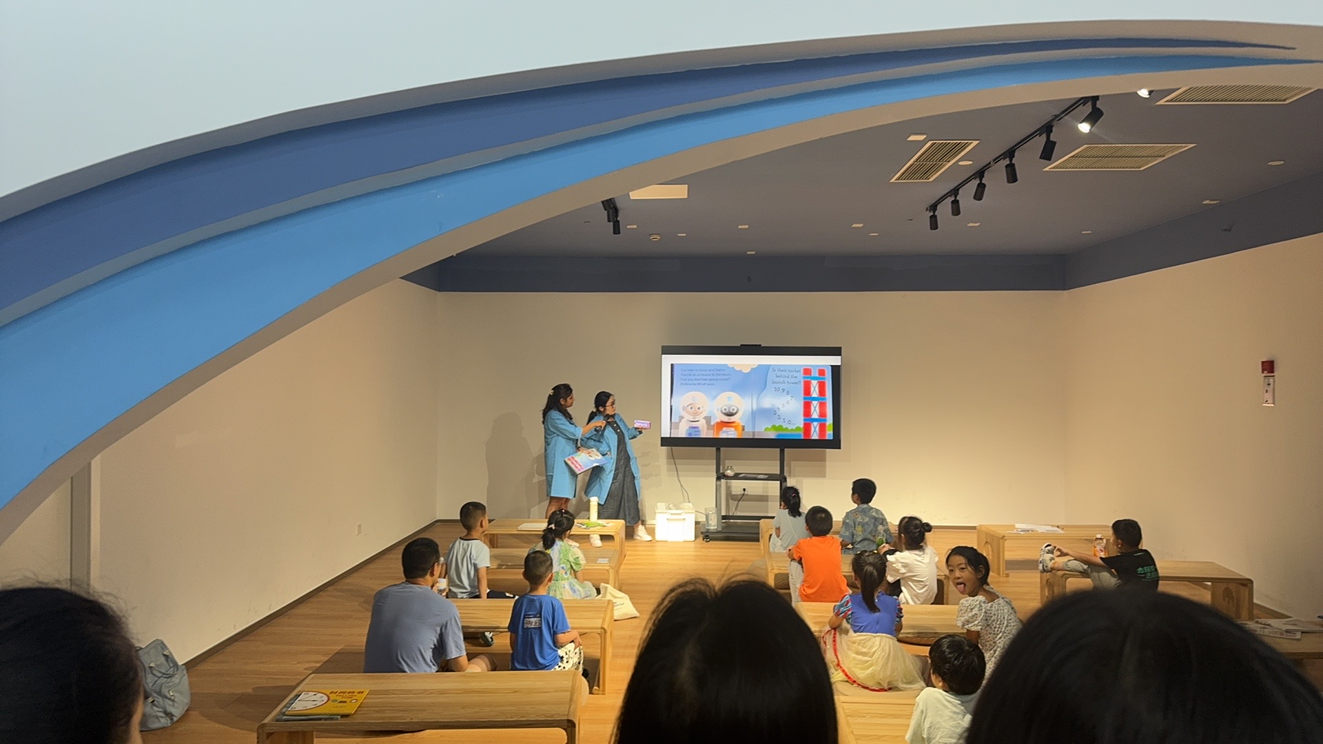 7 月 19 日下午 3 点,南通市少年儿童图书馆鲸鱼角(沉浸式体验区)热闹非凡,一场别开生面的 “太空漫游” 活动在此精彩上演。此次活动吸引了 12 组 7-12 周岁的青少年儿童家庭热情参与,在老师 Elena&Freya 的带领下,开启了一场充满趣味与知识的太空探索之旅。