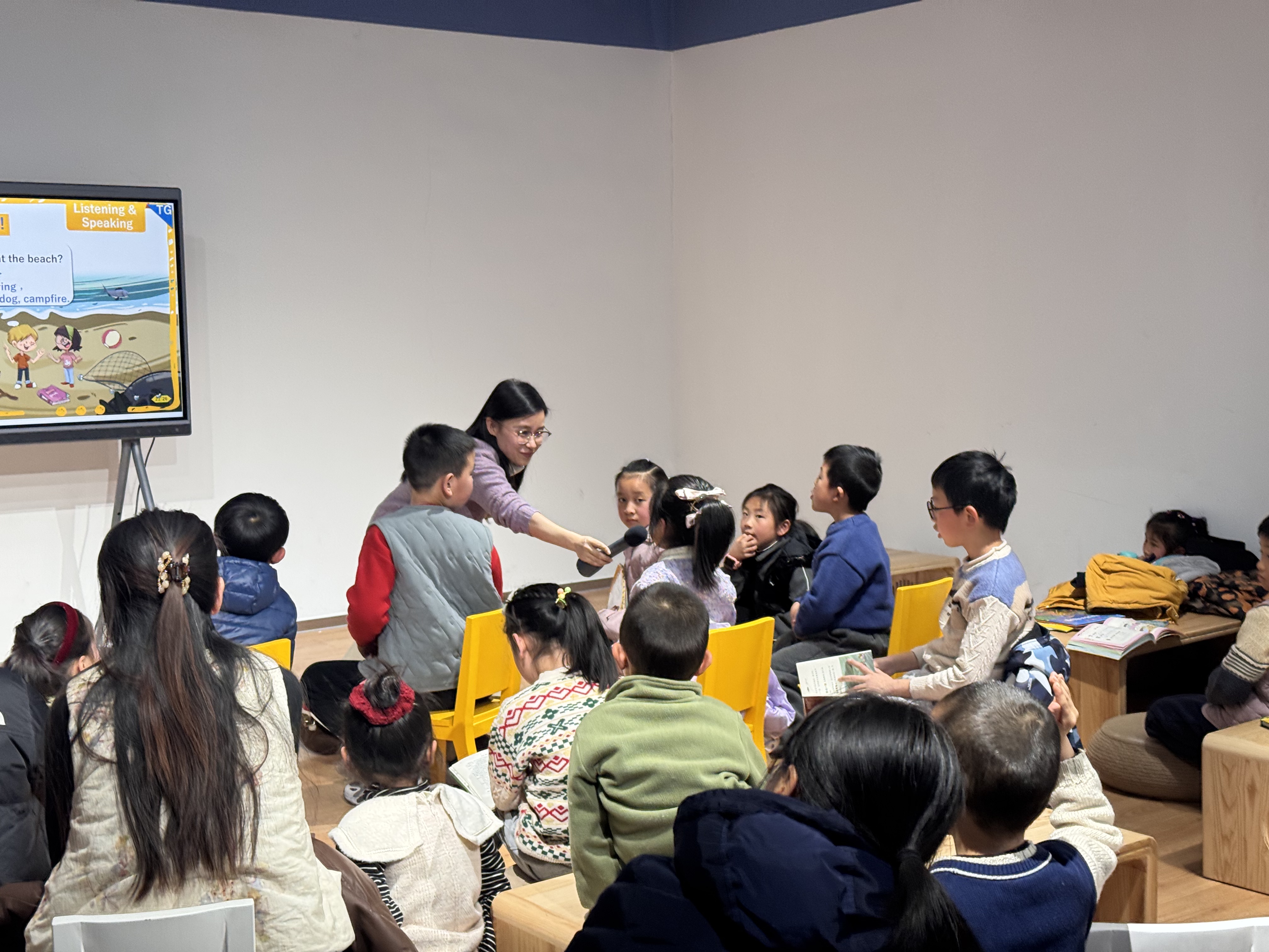 活动现场,姬老师秉持“兴趣先行,意义为本”的理念,通过生动的双语讲述、趣味互动问答与情景模拟,带领孩子们走进充满生活气息的整理故事:故事里的小主人公们在整理玩具、书籍的过程中,学会了“Put it away”的正确表达与使用场景。老师还结合绘本内容设计了“分类整理小挑战”互动环节,让孩子们在实践中巩固英文词汇,同时直观感受有序收纳的乐趣与重要性。