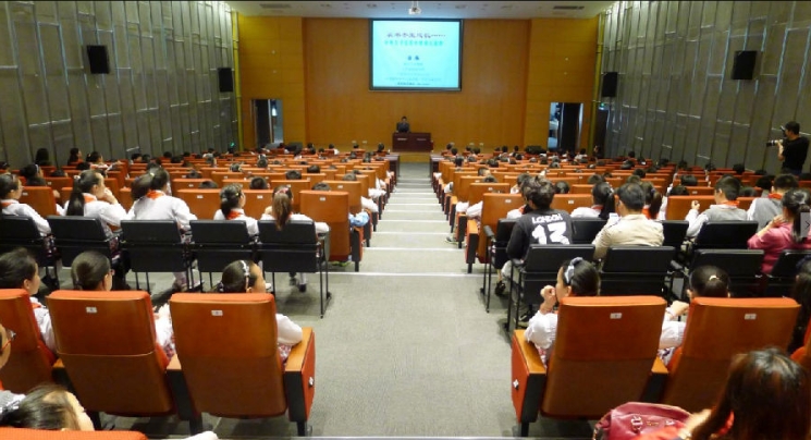 徐雁教授首先重点介绍了《海伦凯勒自传》、《居里夫人自传》、《富兰克林自传》等中外名人传记,讲述了阅读中外传记佳作的“五味十益”,接着他又推荐了《时代广场的蟋蟀》、《城南旧事》、《一粒珍珠的故事》等经典名著,并鼓励广大未成年人阅读中外名著,从中汲取正能量,面对人生中的困难和挫折敢于迎难而上,做好做强自己,不轻易动摇人生的理想信念。最后徐教授与小读者们进行了面对面交流。徐雁教授的讲座高屋建瓴、说理深入浅出,不仅提高了同学们的阅读兴趣,而且让同学们对读书与人生有了更加深刻的认知。城中小学近300名高年级学生参加了此次活动。