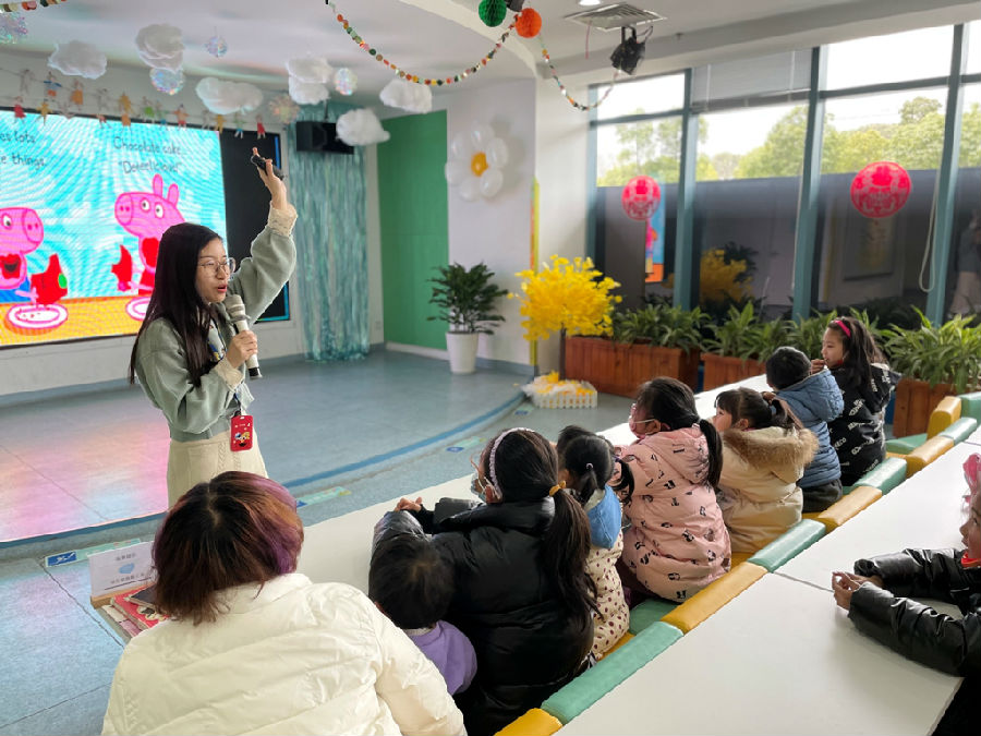 南通市少年儿童图书馆于2月6日(周日)下午开展了小猪佩奇的系列英文绘本之《佩奇最喜欢的事》。在宝宝成长过程中,类似这样的要求,妈妈一定遇到过:妈妈,再说一个故事呗,我还不想睡觉呢!妈妈,牙齿上没有脏呀,我就不刷牙了吧!妈妈,购物车还没满呢,我再拿些吃的哟!宝贝长大了,他们开始会坚定地说“我要”,倔强地说“我不要”。妈妈们是否会因为宝贝们任性的要求而手足无措?又是否会因为宝贝们的不听劝阻而无比烦恼?别担心啦!红遍全球的小猪佩奇将分享她的成长小故事,帮助你的宝贝潜移默化地养成各种良好的行为习惯。